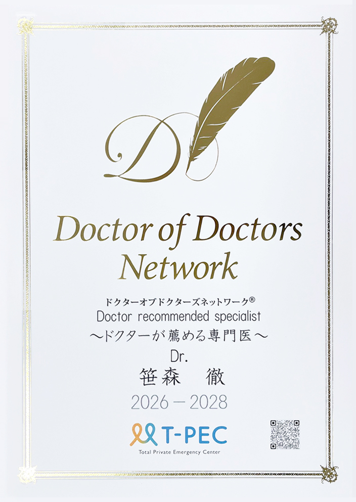笹森医師は2023-2025年にもドクターが薦める専門医に認定されています。